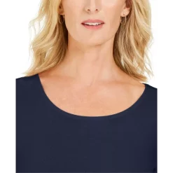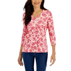 Casualwear that feels like a day at the beach! Relax and stay stylish in this 3/4-sleeve top by Karen Scott, finished in a fun, shell-print design.