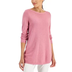 A soft brushstroke design cascades from the shoulders of this button cardigan from Karen Scott, a relaxed sweater that’s stylish layered or alone.