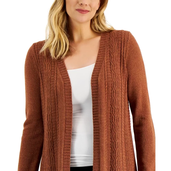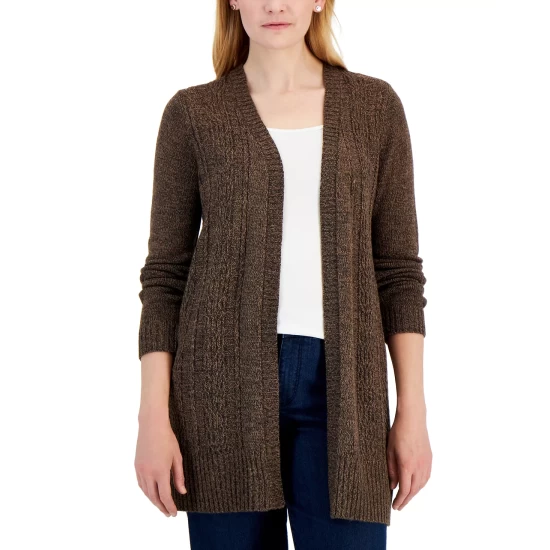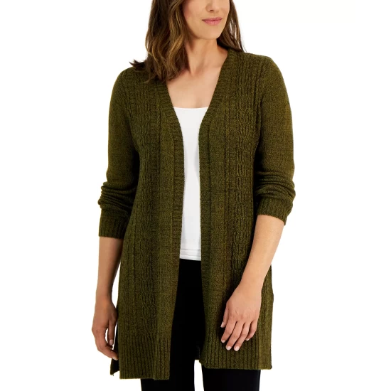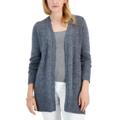 Top off your look with coziness and style in this long open duster cardigan from Karen Scott.