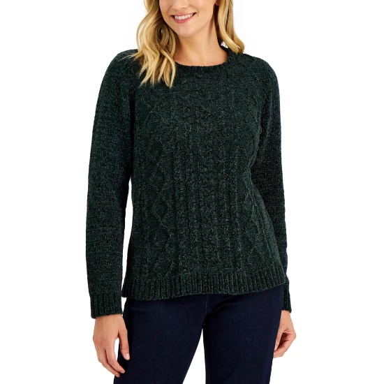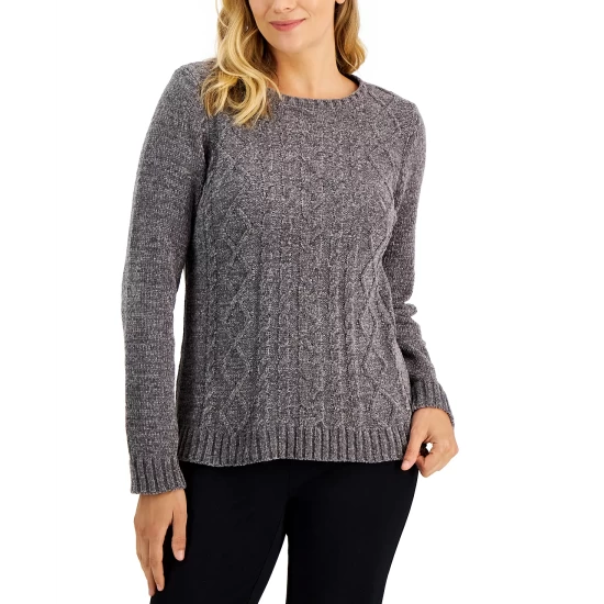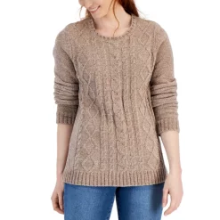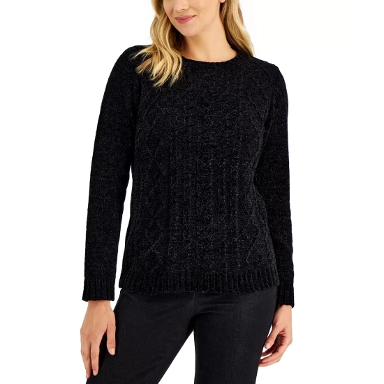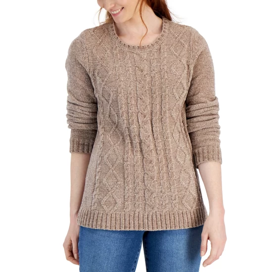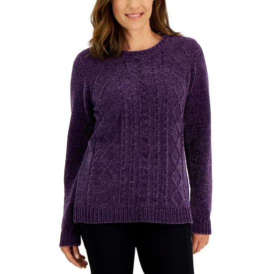 Soft and cozy, this plush pullover sweater from Karen Scott is made in a cable-knit style.