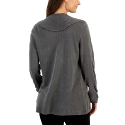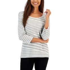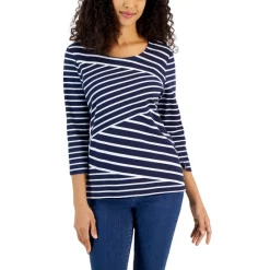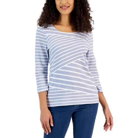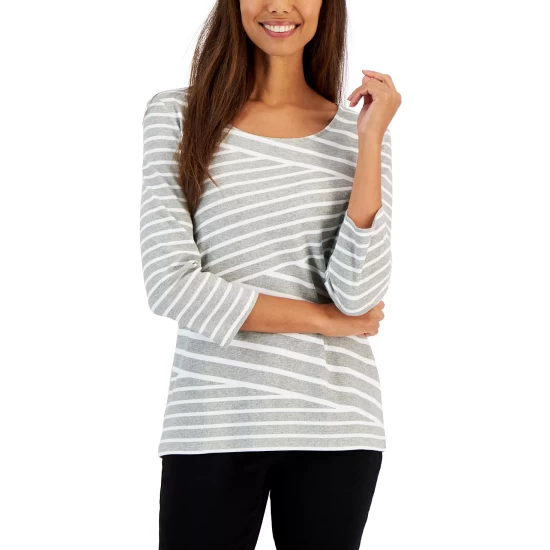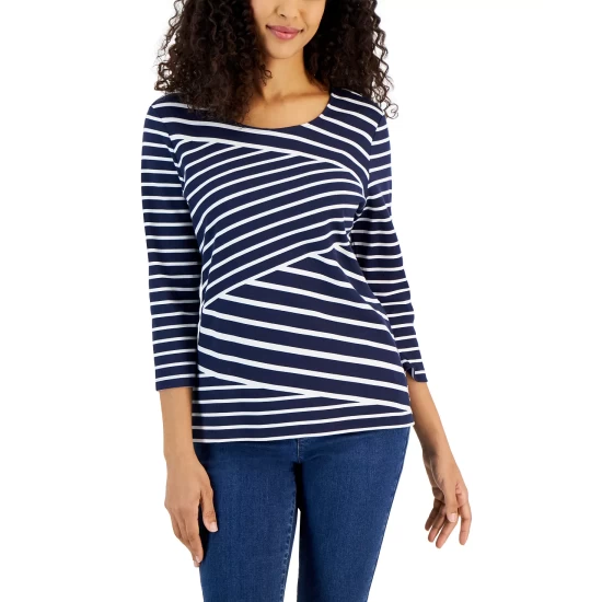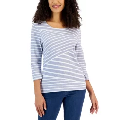Stripes create asymmetrical zigzags across this Karen Scott top, bringing stylish energy to the 3/4-sleeve design.