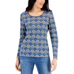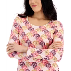 A pretty print and distinctive color freshen this look from Karen Scott, a relaxed silhouette that offers stylish possibilities.