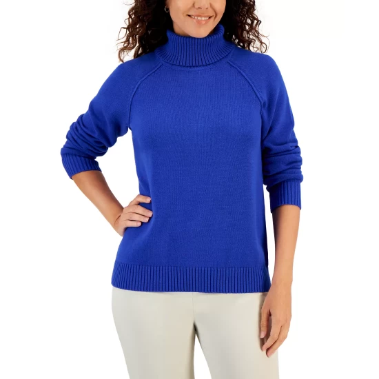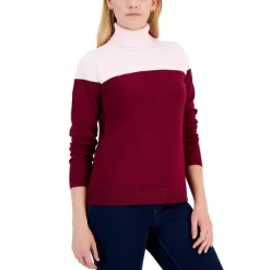 Get comfortable in style with a cool colorblocked turtleneck sweater from Karen Scott.