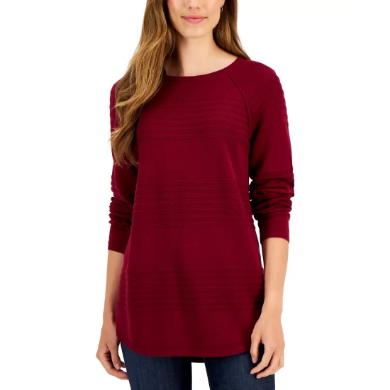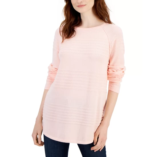 Karen Scott elevates this casual sweater with tonal, textured stripes and raglan sleeves.