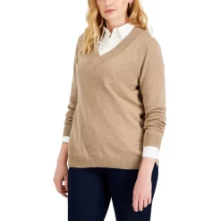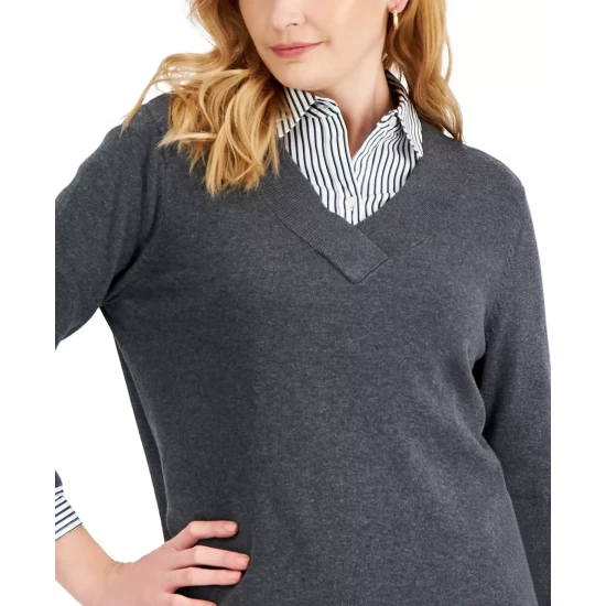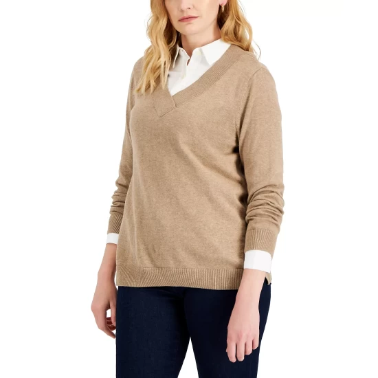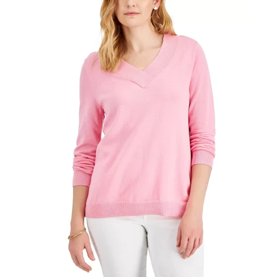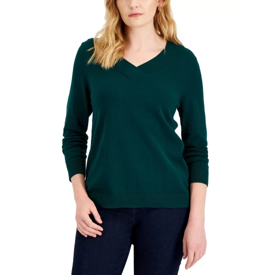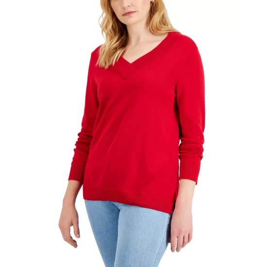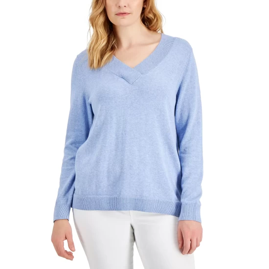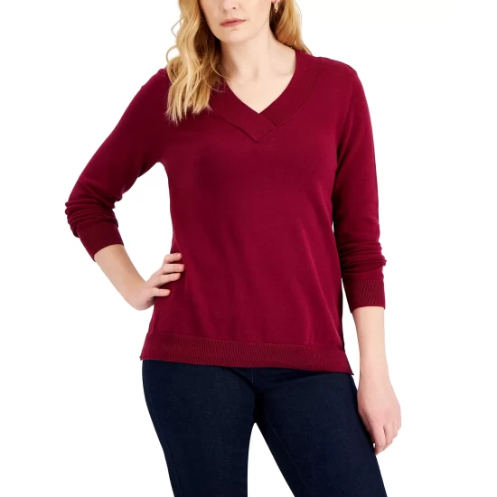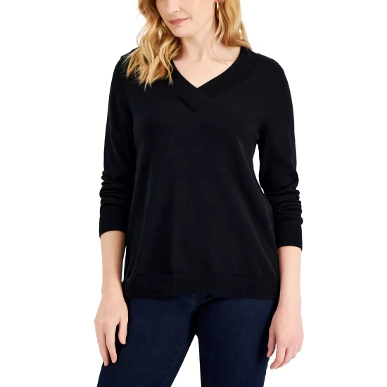 Stylish layered or alone, this relaxed Karen Scott sweater updates the classic V-neck with an overlap detail.