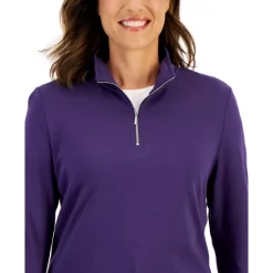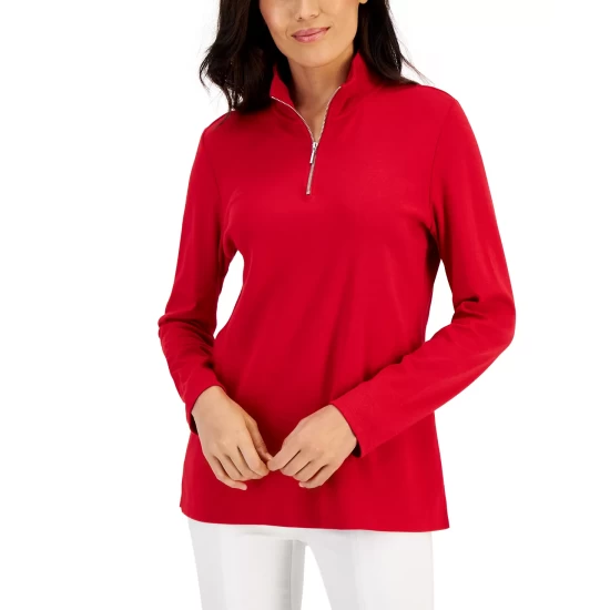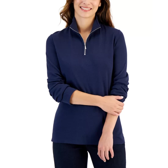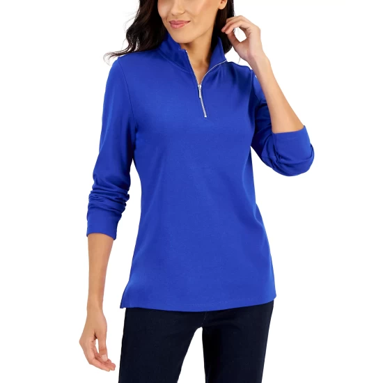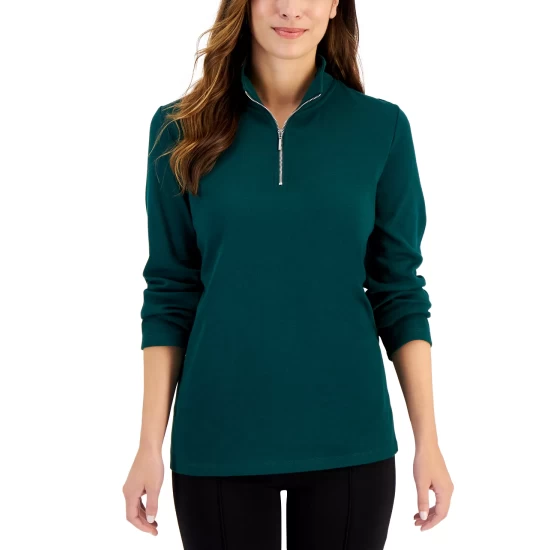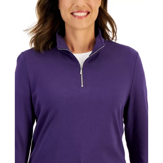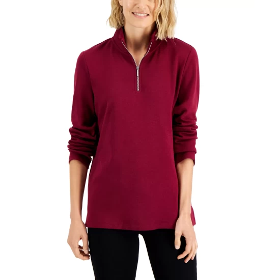 Karen Scott keeps your look cozy and versatile with this zip-neck top made with 100% cotton.