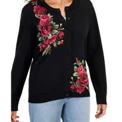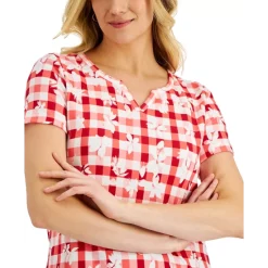 Fun florals highlight classic gingham, bringing whimsical flair to this relaxed top from Karen Scott.