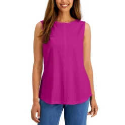 Fun florals highlight classic gingham, bringing whimsical flair to this relaxed top from Karen Scott.