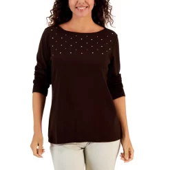 Sparkling details highlight iconic scenes, bringing timeless style and festive fun to Karen Scott’s relaxed sweater.