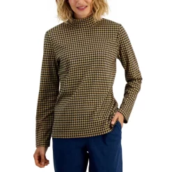 Houndstooth print is a timelessly stylish touch on this go-to mock-neck top from Karen Scott.