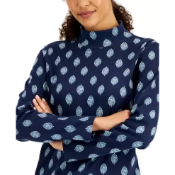 Relaxed with a touch of sophistication, this Karen Scott mock-neck top features a fresh look and easy feel.