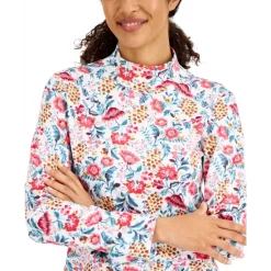 A fun look layered or alone, this relaxed mock-neck top from Karen Scott is in a vibrant floral print that offers stylish versatility.