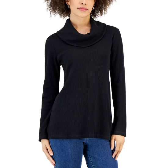 Karen Scott gives you a relaxed wardrobe staple in this cowlneck top. Pair it with your favorite jeans for an effortless style.