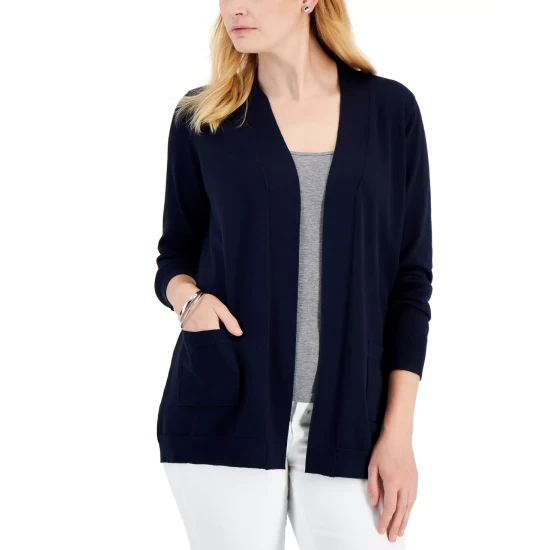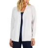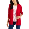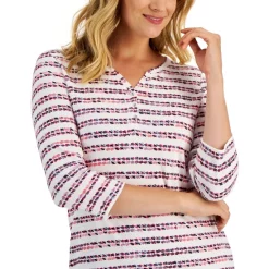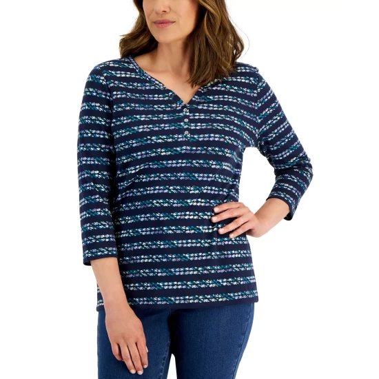 Put a fresh spin on stripes in this Karen Scott Henley top, styled with 3/4-length sleeves.