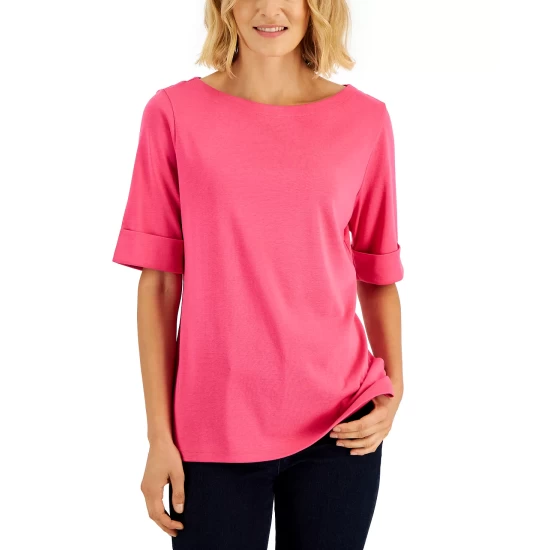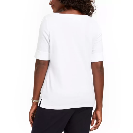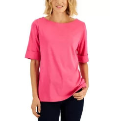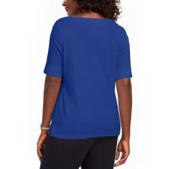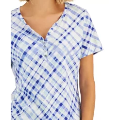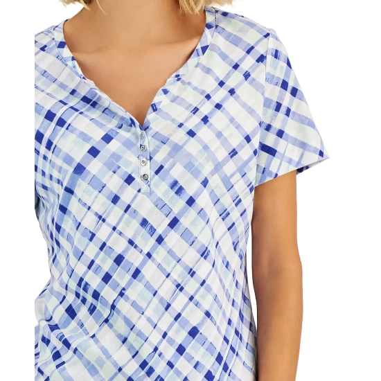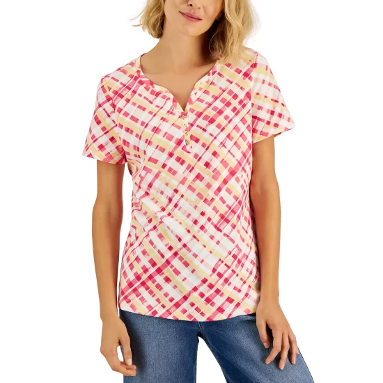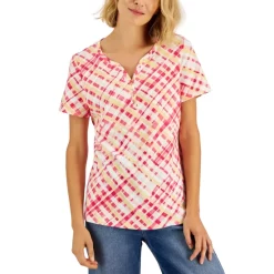 A fresh slant on plaid updates this Karen Scott top, a relaxed knit Henley with a fun look.