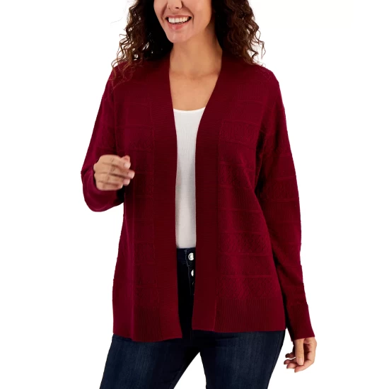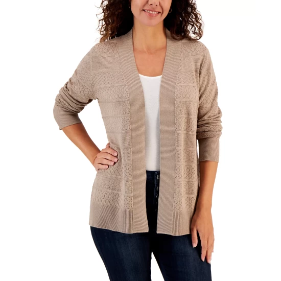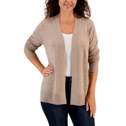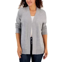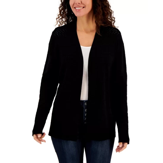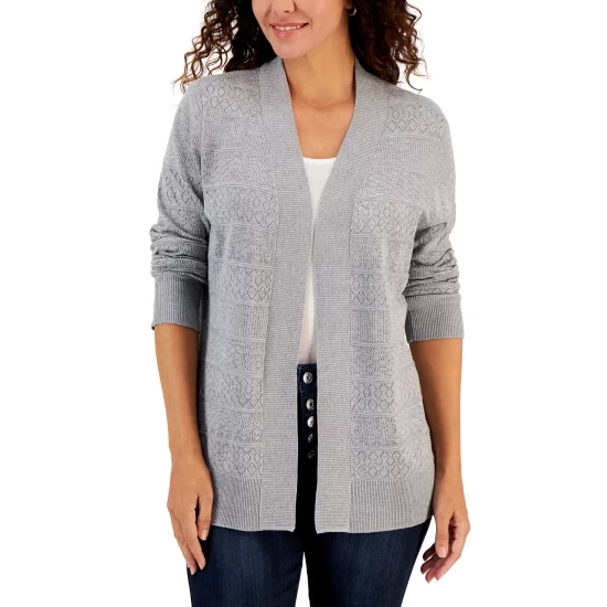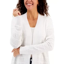 Top off your look with style and grace in this open-front pointelle knit cardigan from Karen Scott.