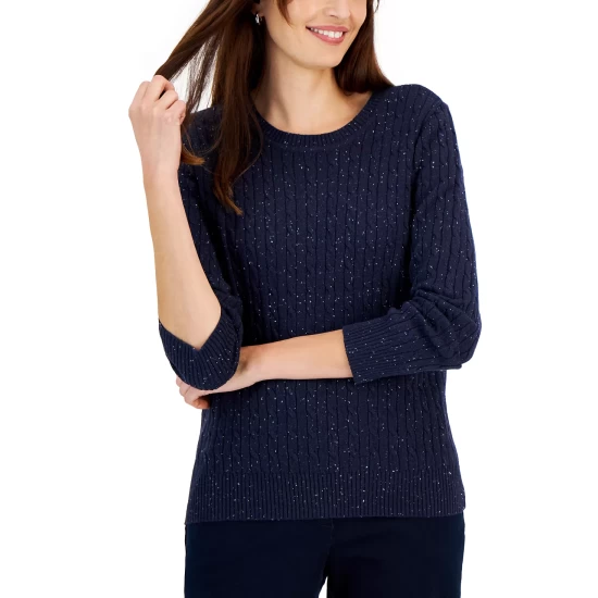 Flourishing florals cascade down into a sweet dot-print in this classically designed boatneck top by Karen Scott.