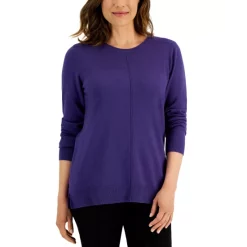 Add texture to any layered look; Karen Scott elevates the classic crewneck top with a chic seam front detail, finished with ribbed cuffs and hem.