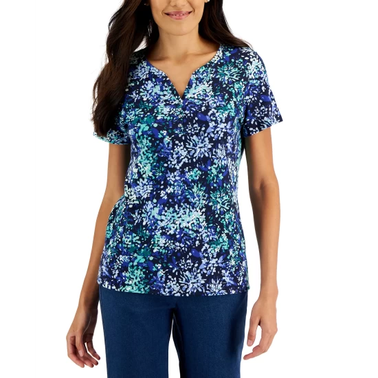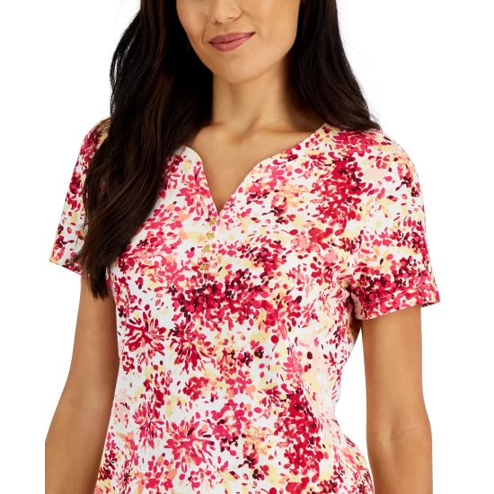 Adorned with blooming florals this top by Karen Scott is finished with an oh-so-pretty Henley neckline; the perfect addition to your casualwear favorites.