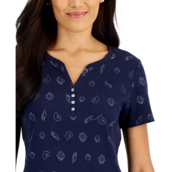 Embellished with a sparkling shell print, this top by Karen Scott is finished with an oh-so-pretty Henley neckline, making it the perfect addition to your casualwear favorites.