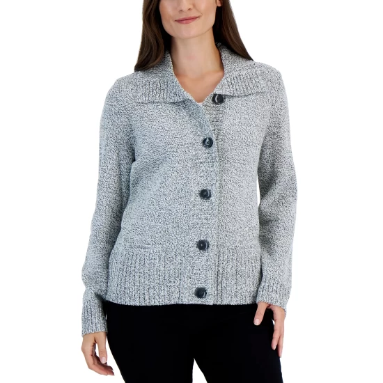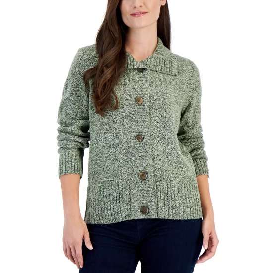Top off your look in cozy perfection with this thick-knit button-up cardigan from Karen Scott.