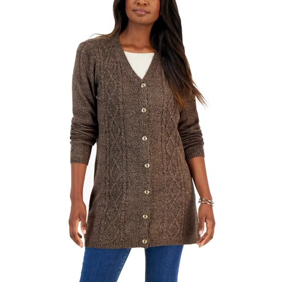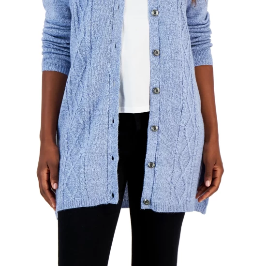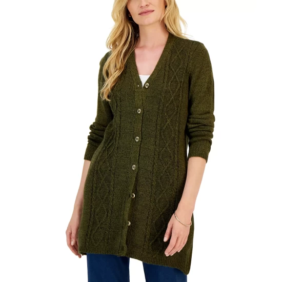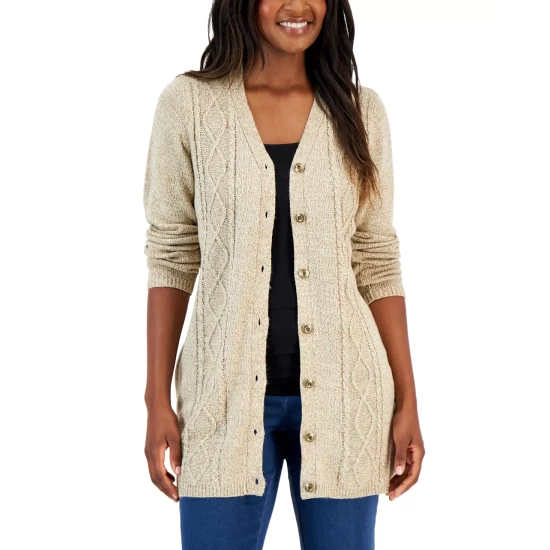 Button front closures lend endless styling options to this women’s cardigan from Karen Scott, a versatile addition to any chic closet.