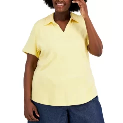 Top 10 ๐ Karen Scott Plus Size Cotton Johnny-Collar Top, Created For Macy’s Citron Aura ๐