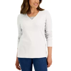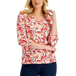 Top 10 ๐ Karen Scott ๐ฉ Women’s V-Neck 3/4-Sleeve Top, Created For Macy’s Peony Coral ๐